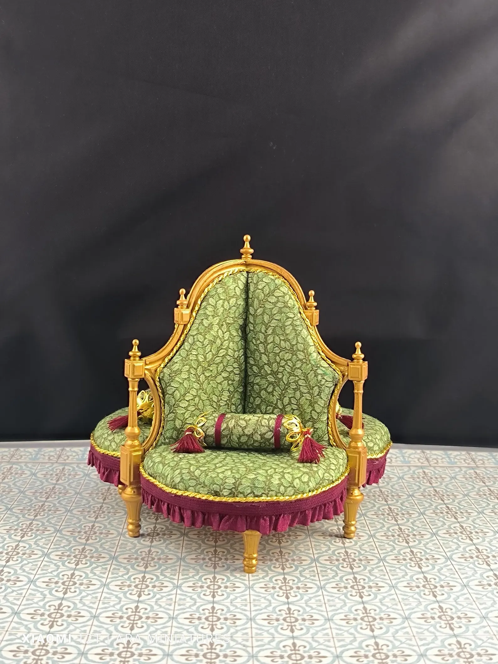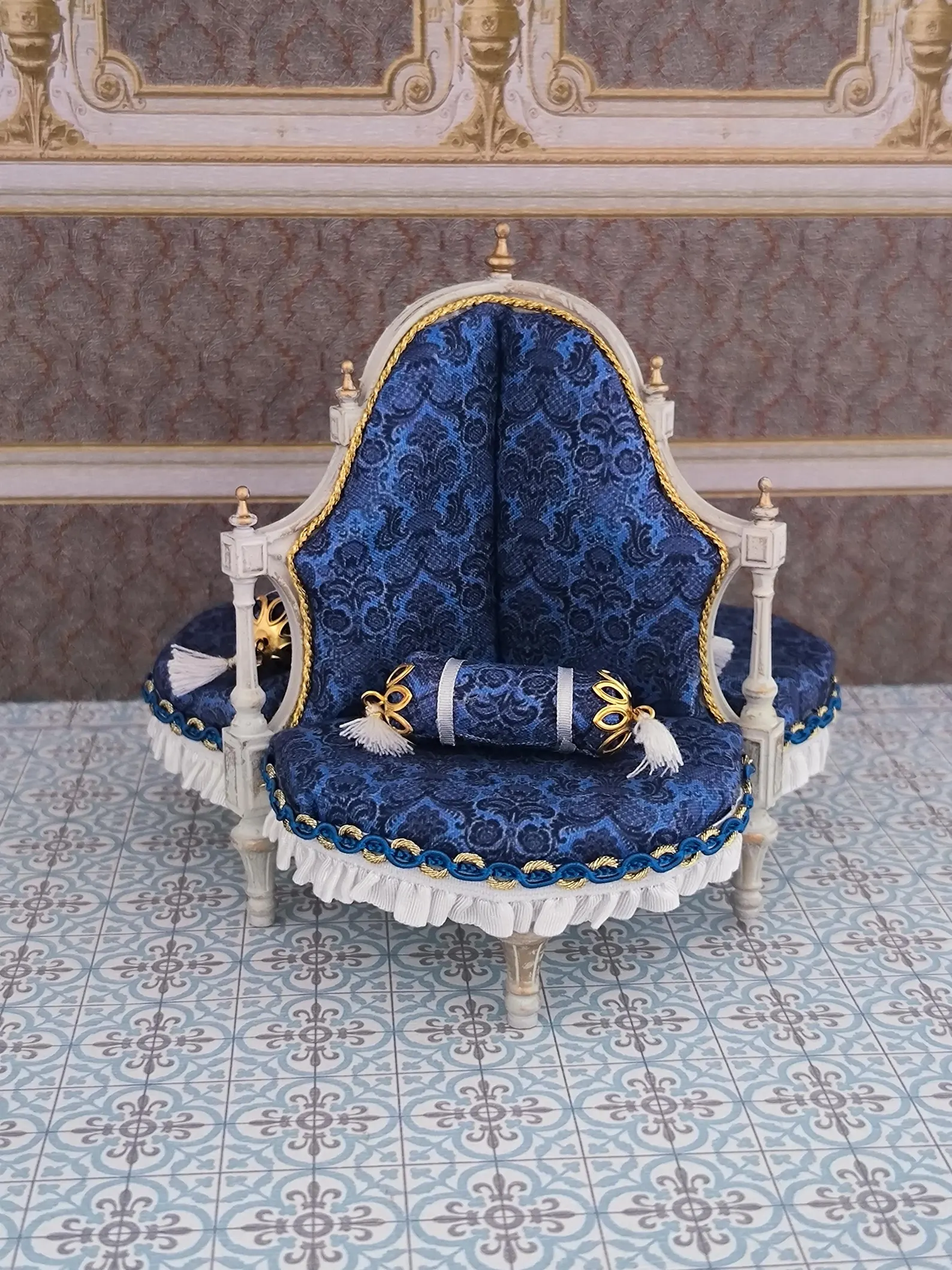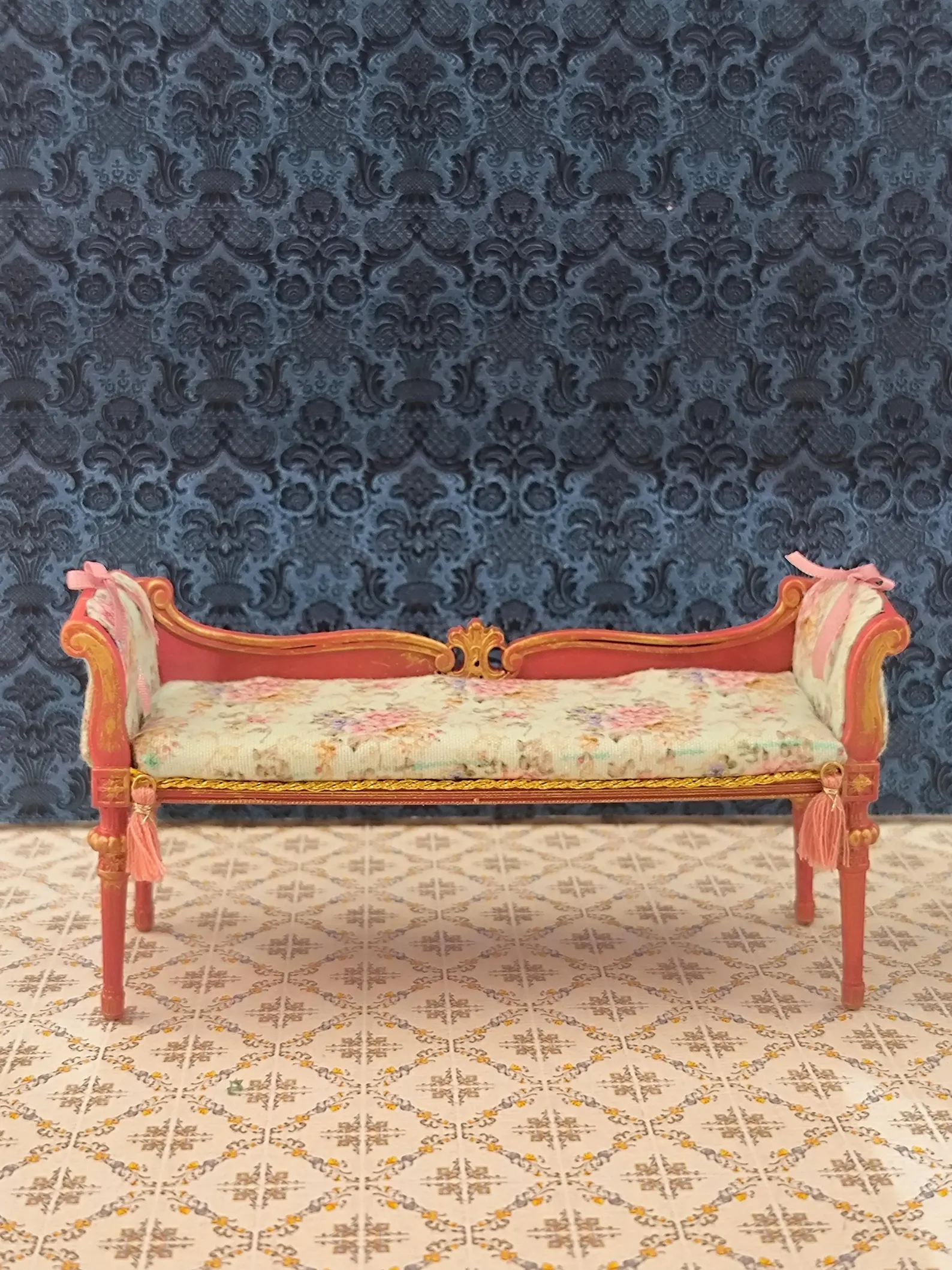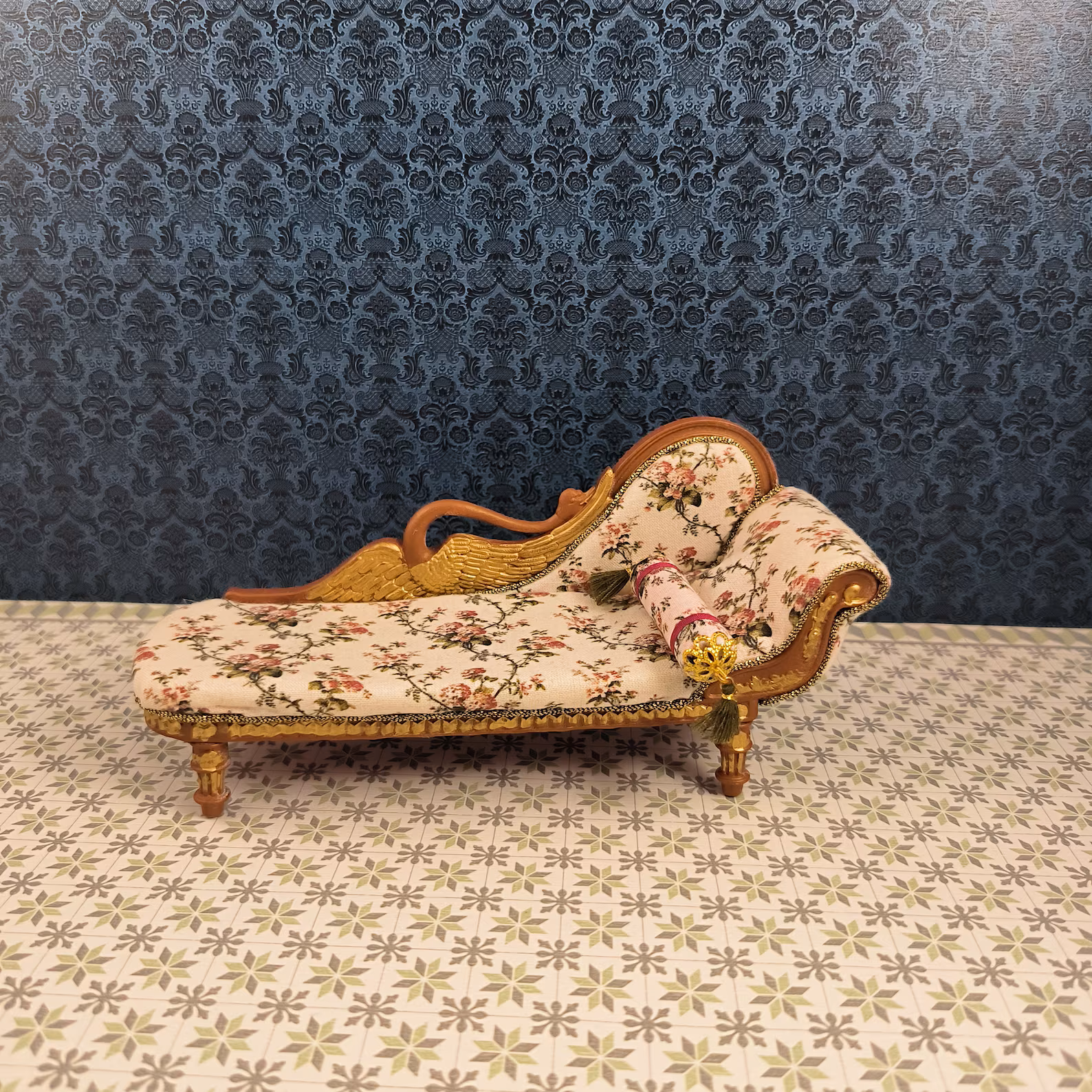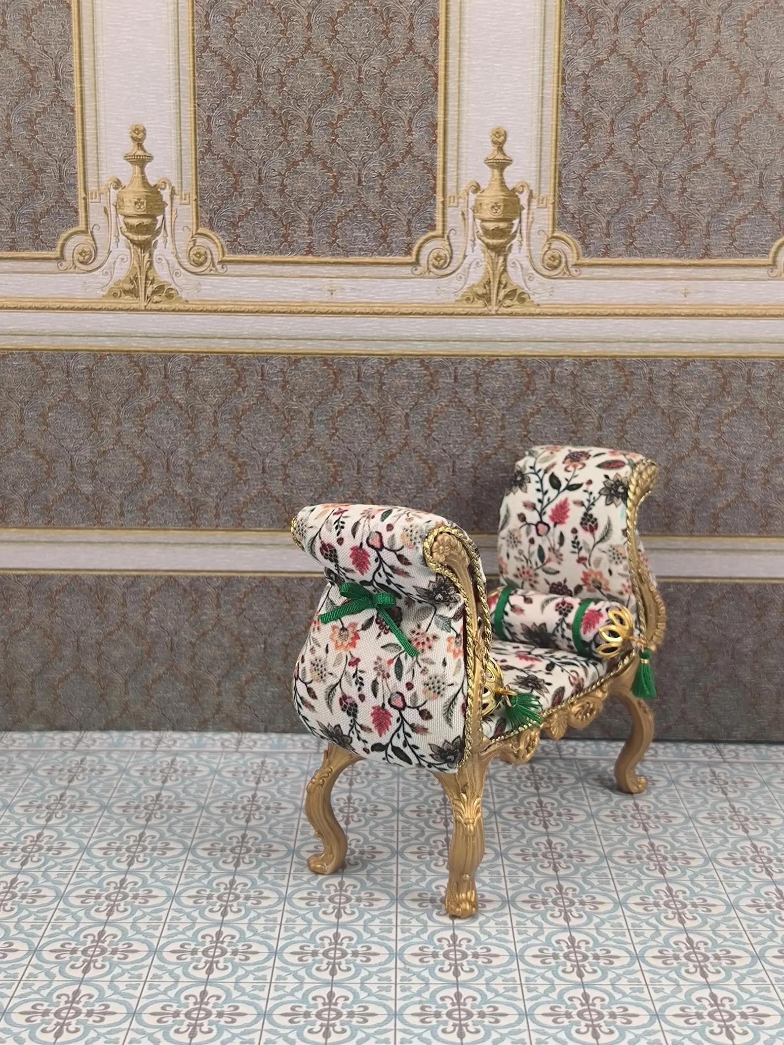 Sillón diván en miniatura para casa de muñecas victoriana a escala 1/12