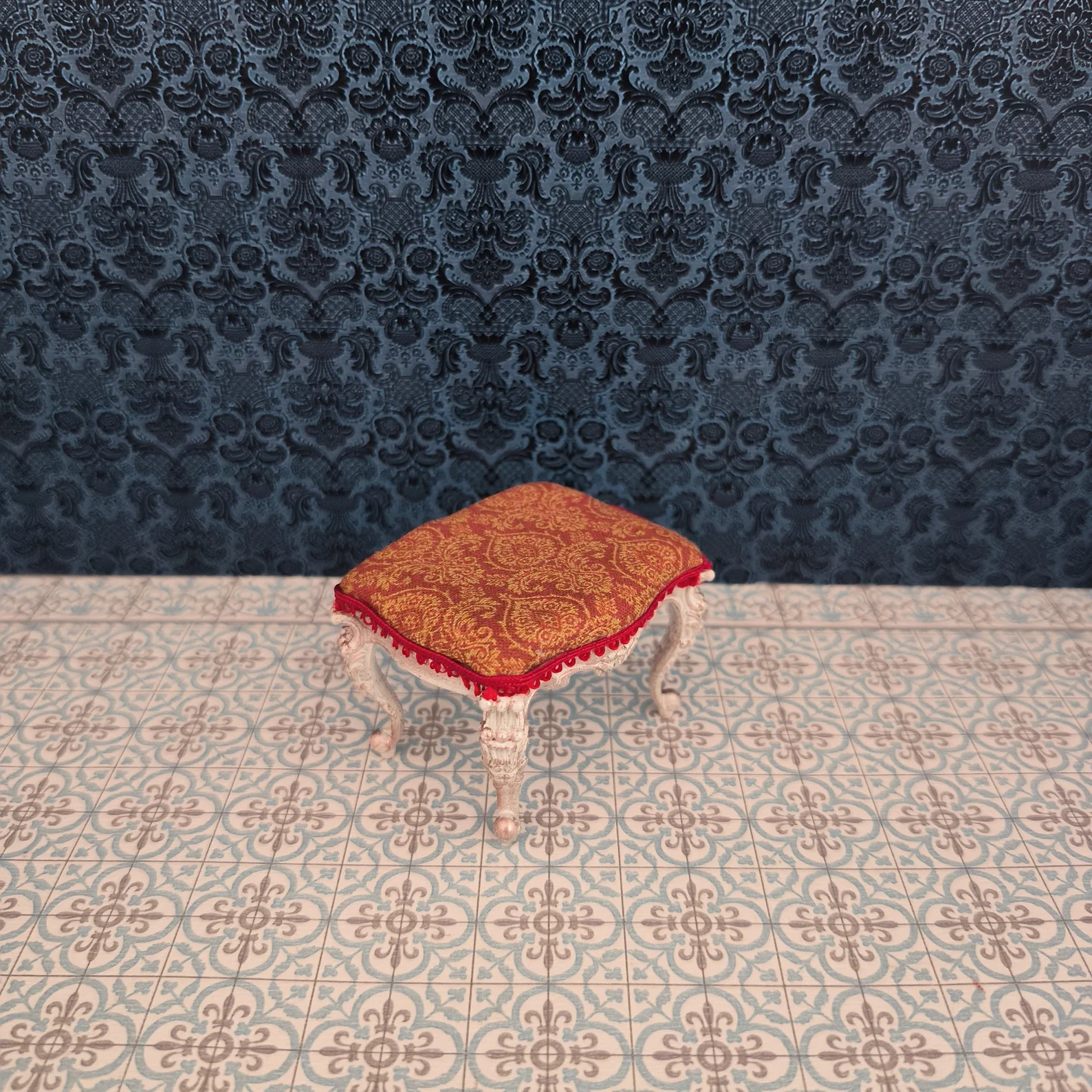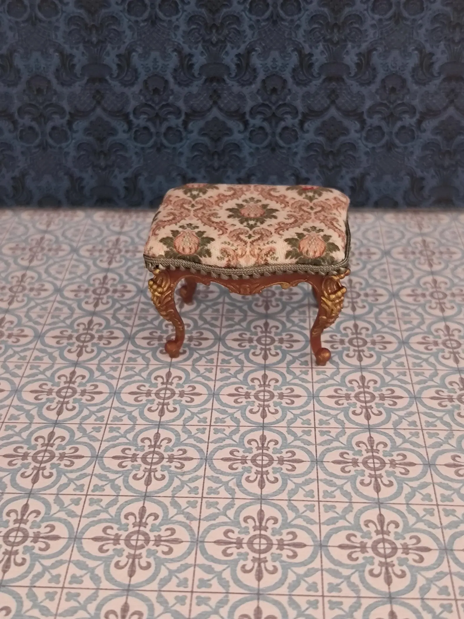 Taburete victoriano en miniatura para casa de muñecas hecho a mano a escala 1/12