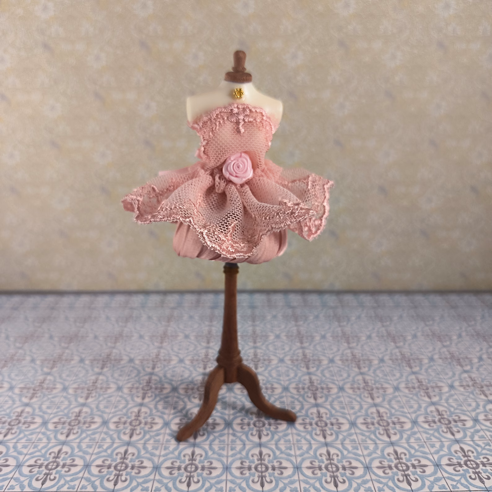 Maniquí vestido miniatura, escala 1/12 para casa de muñecas