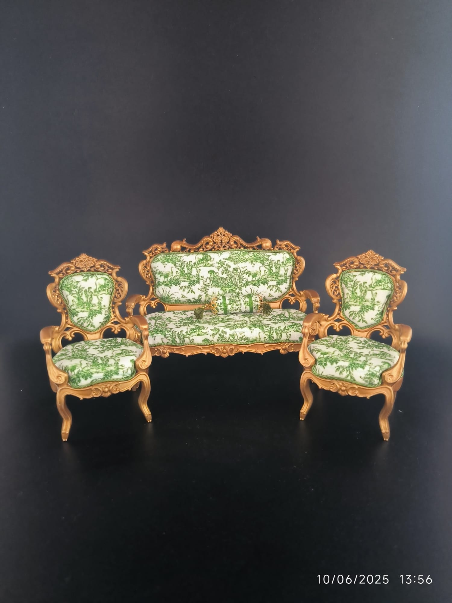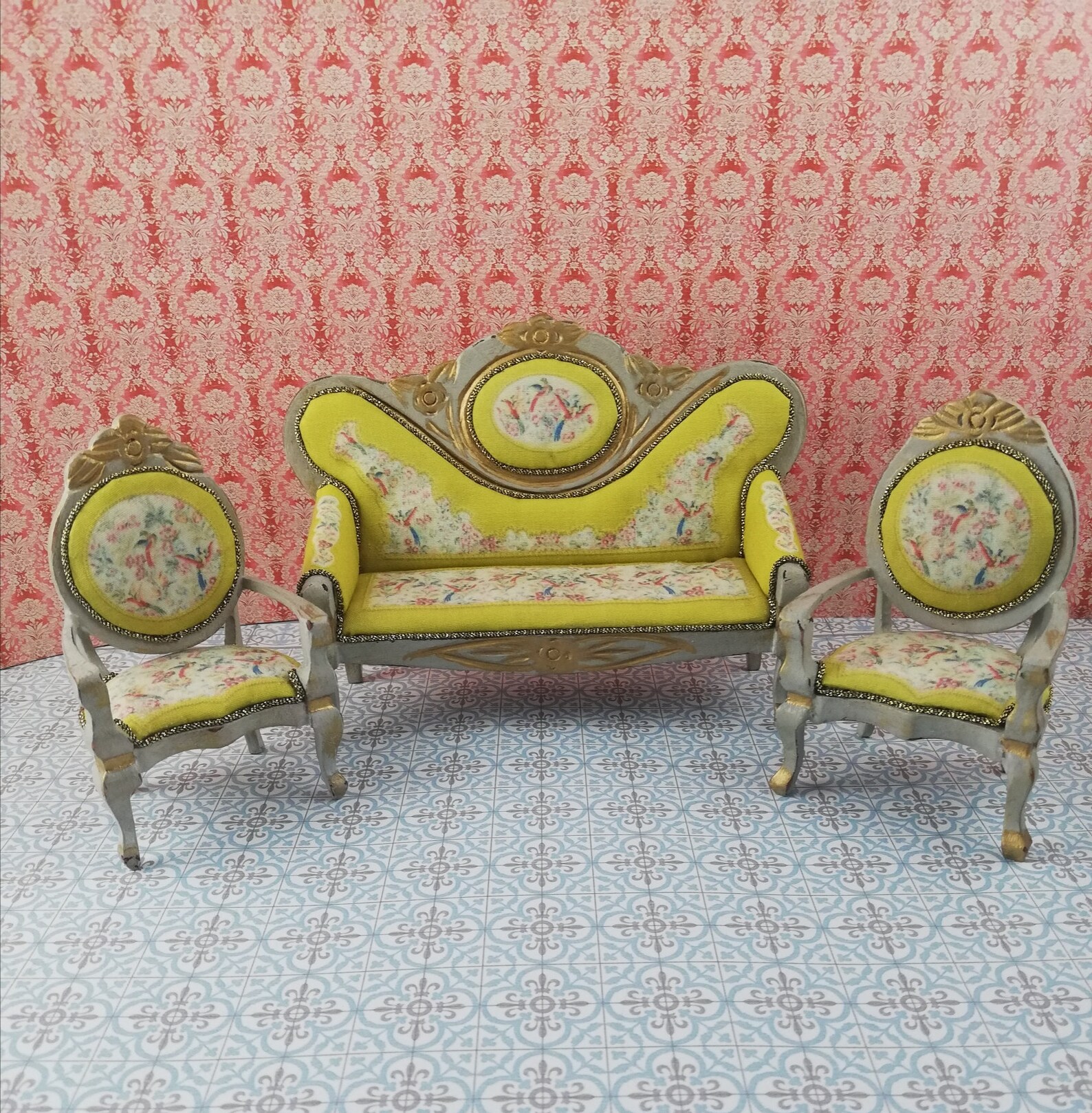 Casa de muñecas, juego de sillones victorianos en miniatura para casas de muñecas, escala 1/12