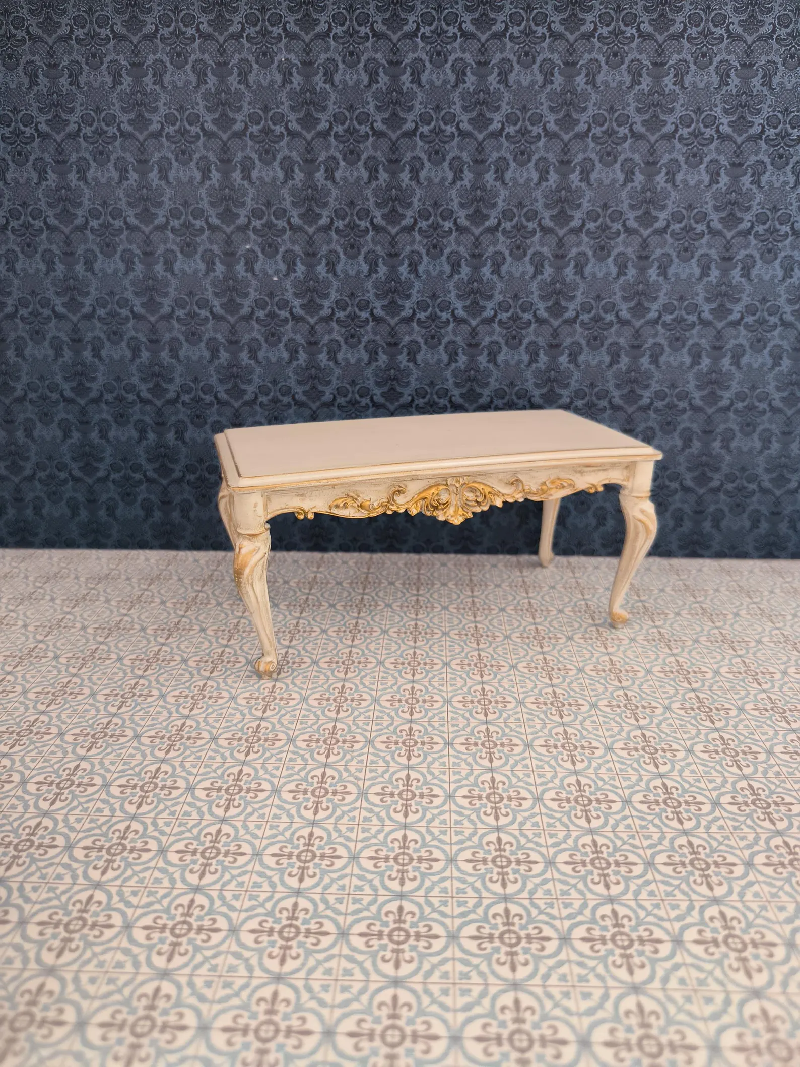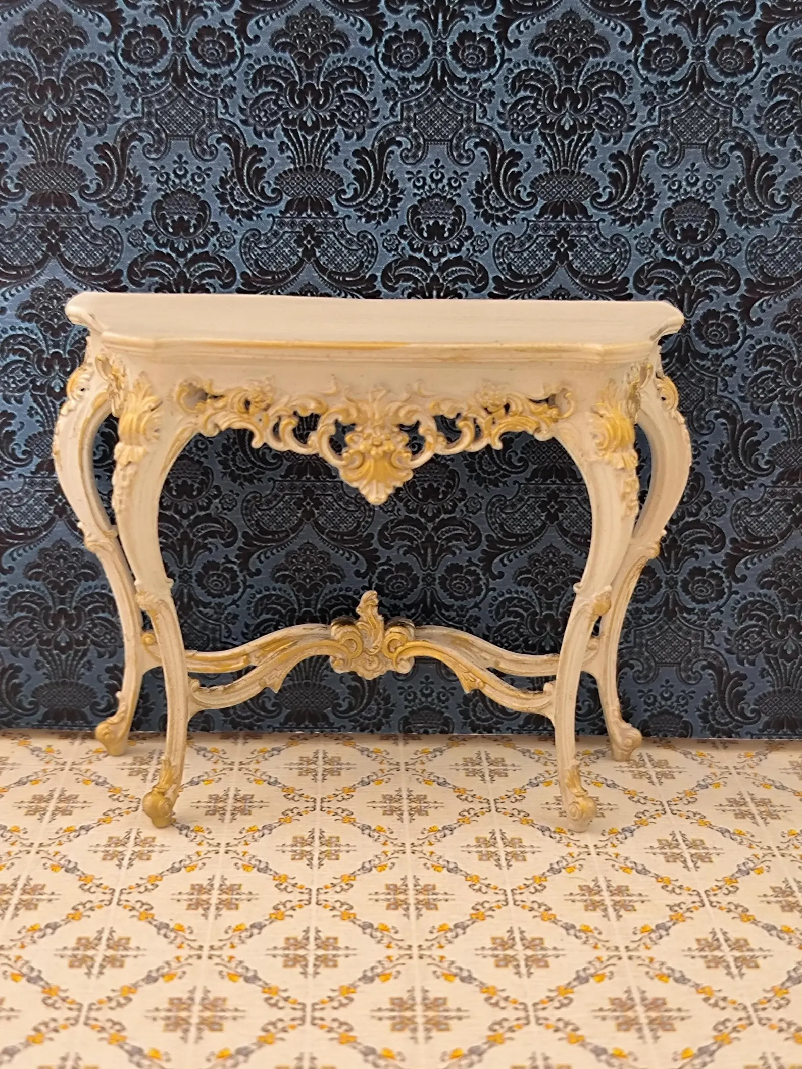 mesa consola de casa de muñecas, miniatura de casa de muñecas del siglo xv, escala 1/12