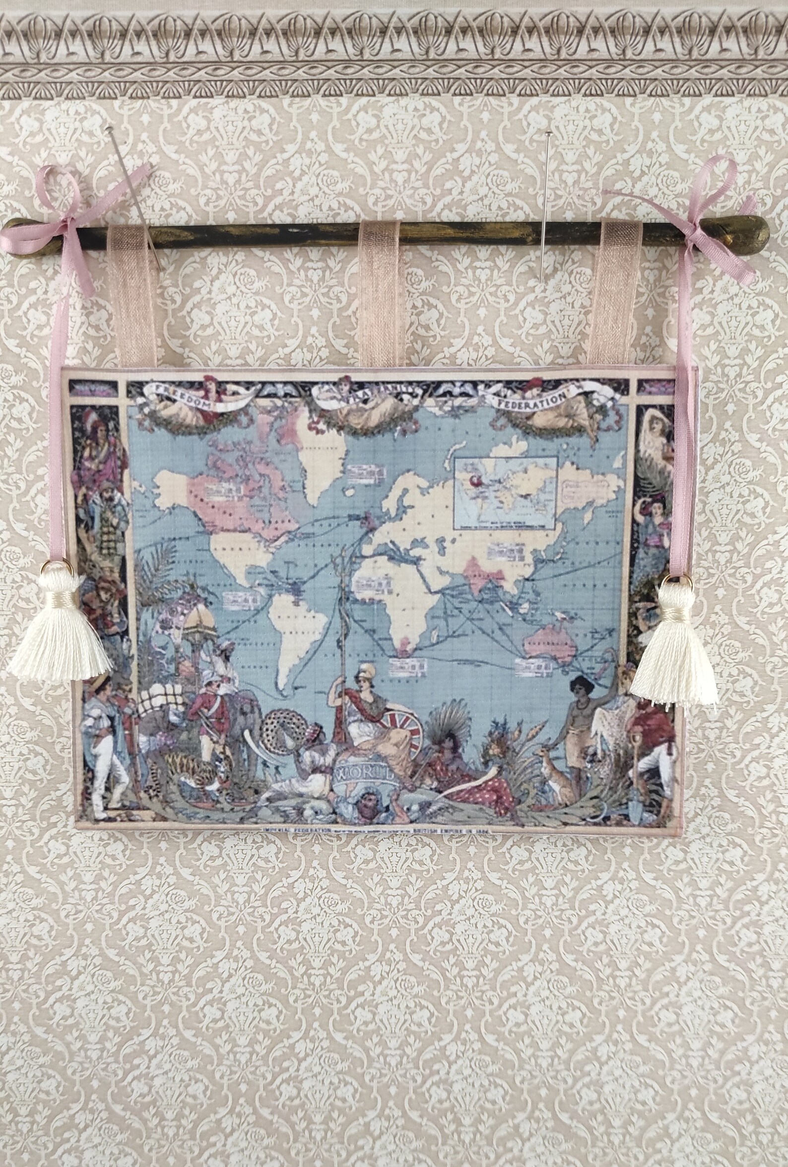Viktorianisches Gobelin-Miniatur-Puppenhaus, Maßstab 1:12, Puppenhaus