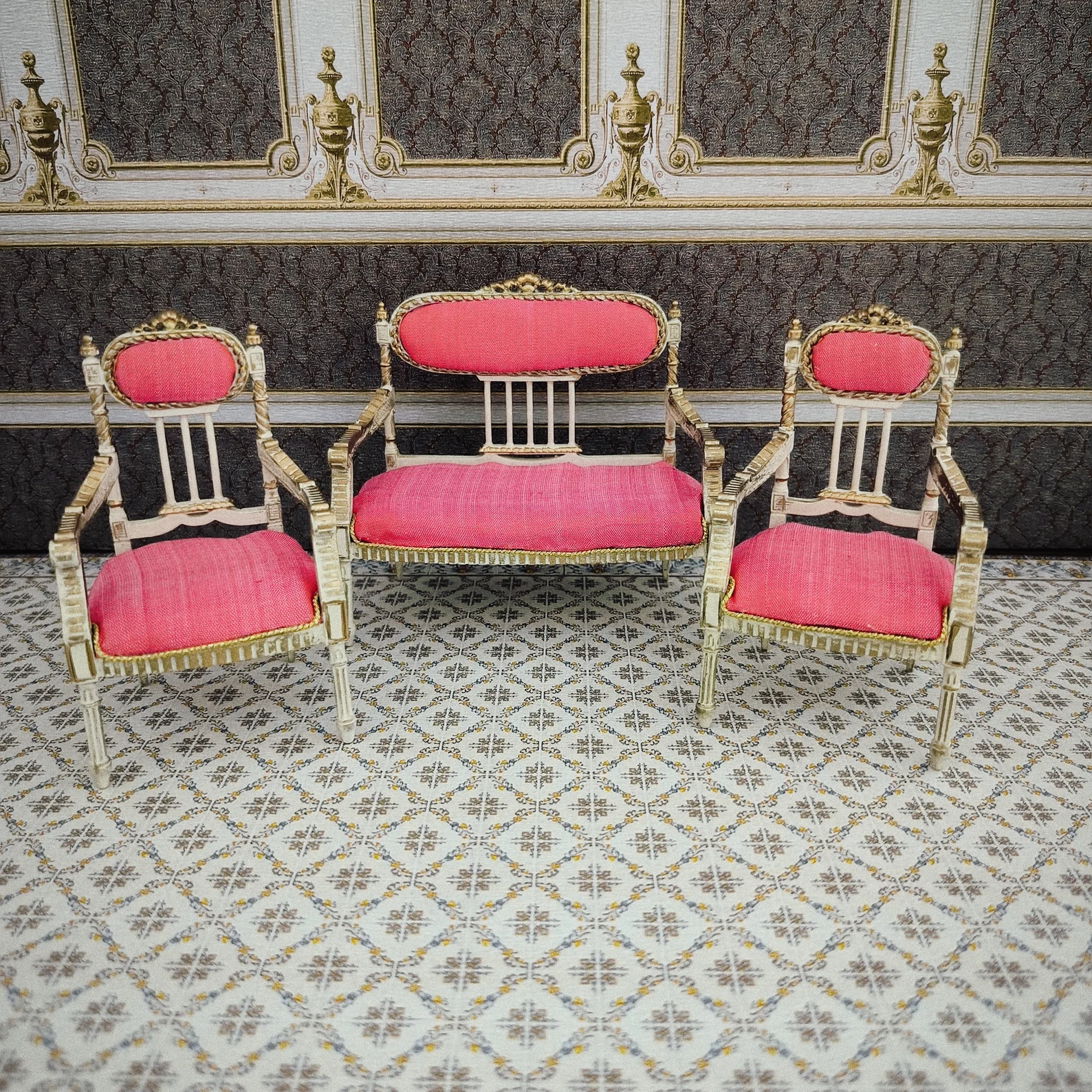 Set aus viktorianischen Miniatursesseln für Puppenhäuser im Maßstab 1:12. \uhandmade