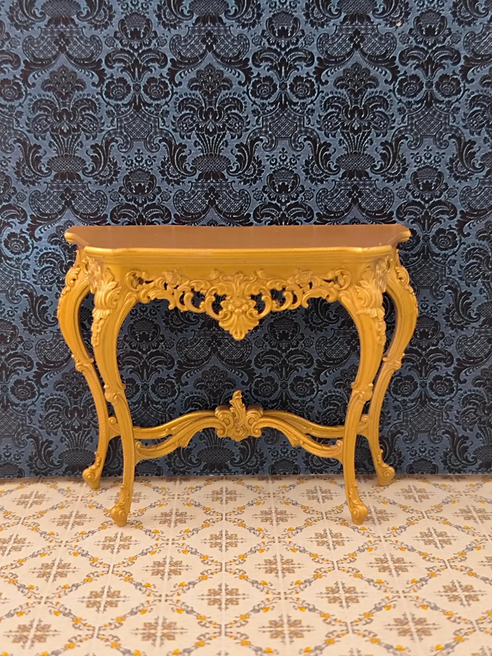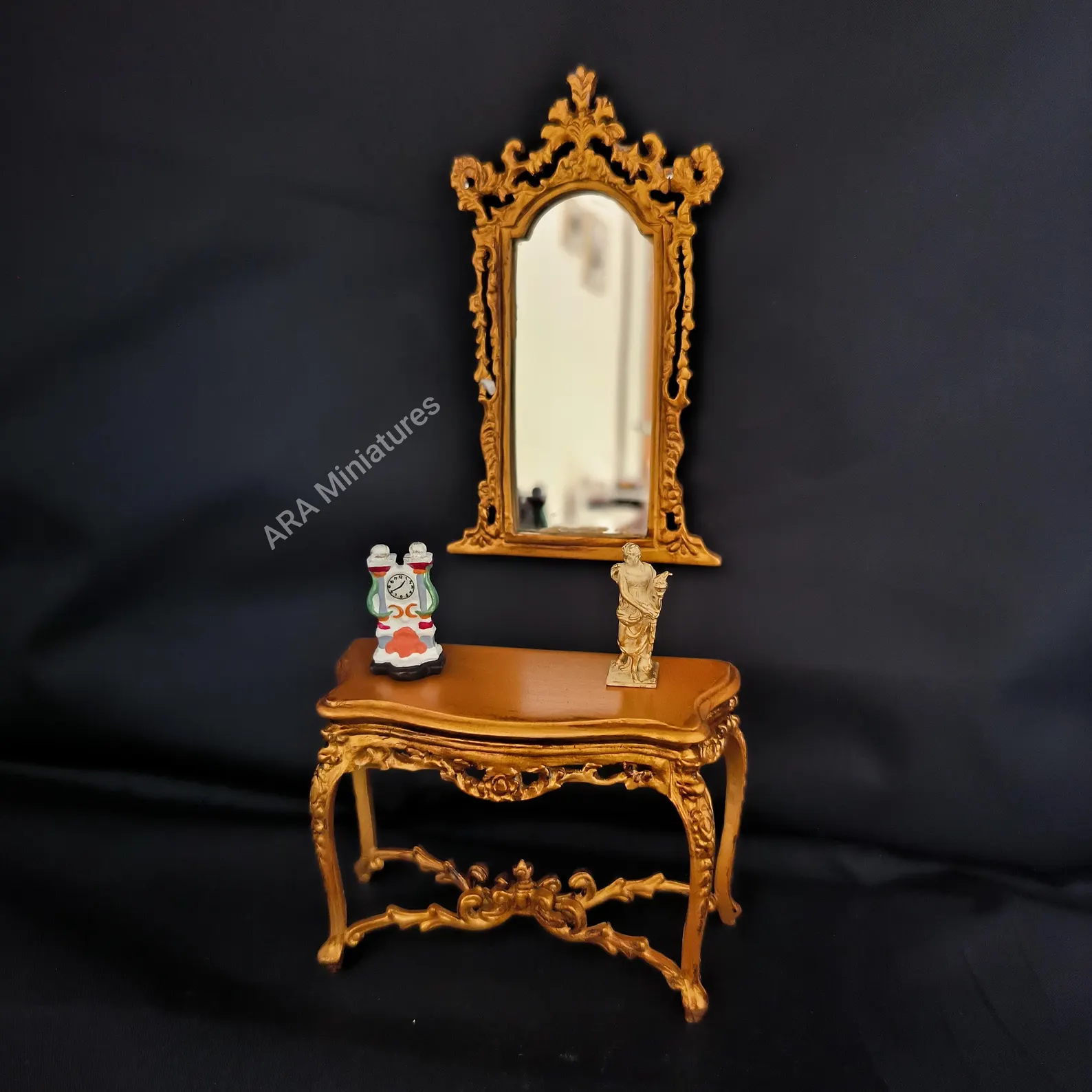 Puppenhaus Konsolentisch mit Spiegel 15. Jahrhundert Miniatur für Puppenhaus 1/12 Maßstab