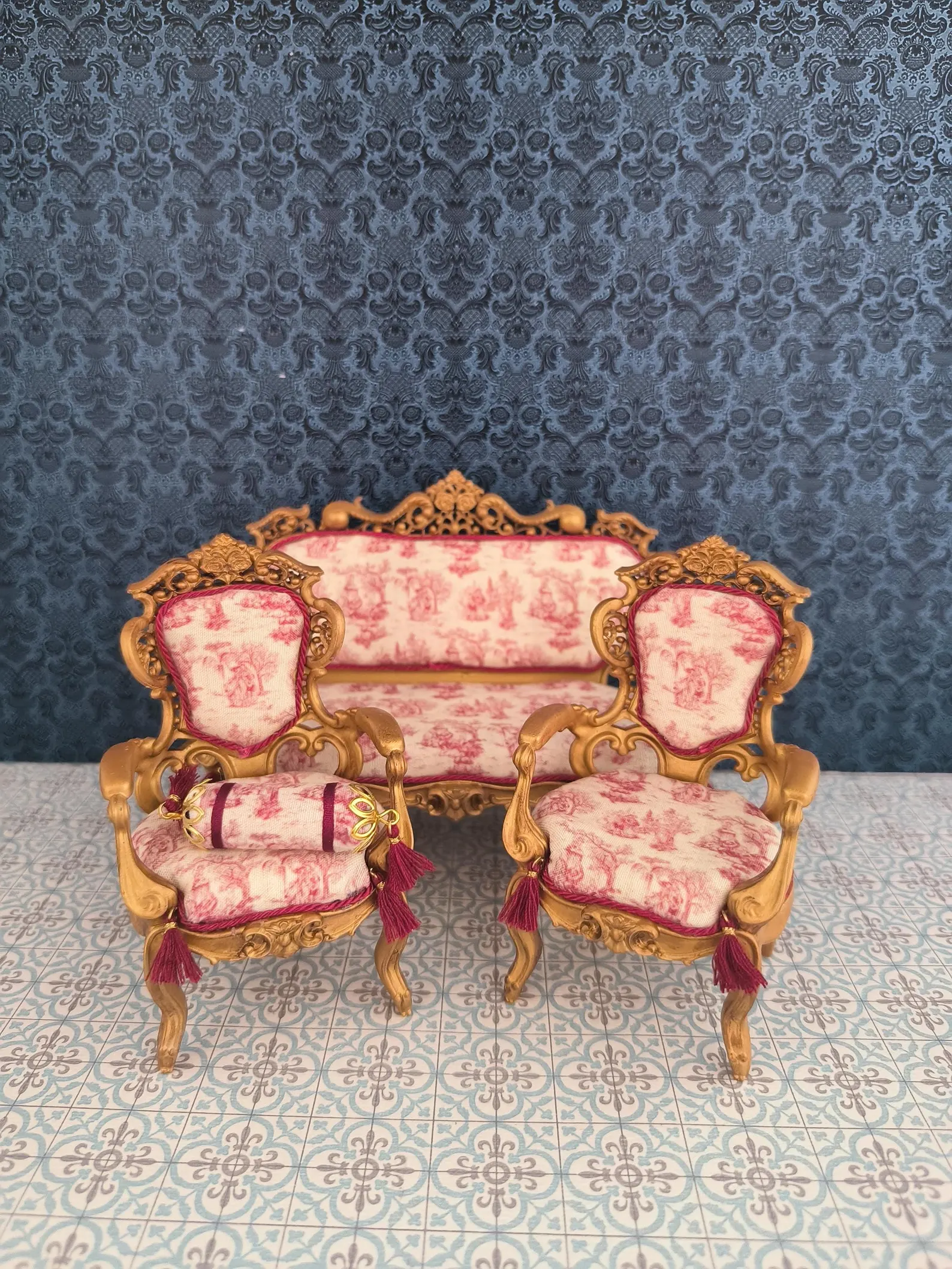Miniatur louis xv stil sessel set für puppenhaus 1/12 maßstab geschenk